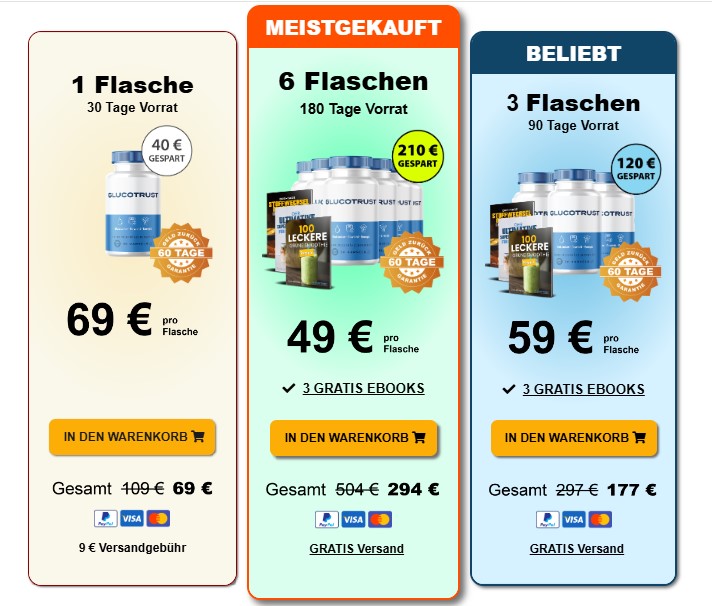 Wenn Sie einen 180- oder 90-Tage-Vorrat von GlucoTrust bestellen, erhalten Sie außerdem ein